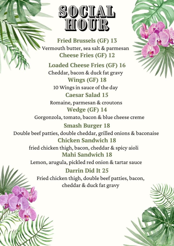Social Hour Menu: 9:00pm-11:00pm Daily