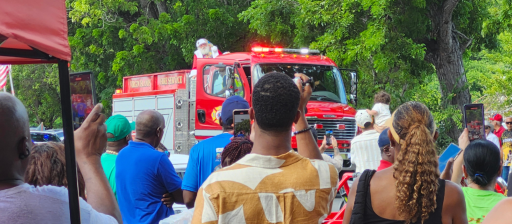 Santa arrives by firetruck to the Coquito Festival (photo by gotostcroix)