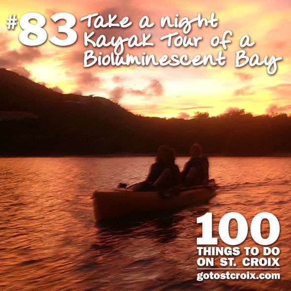 If you have the opportunity, don’t miss visiting St. Croix’s breathtaking bioluminescent bays. Keep in mind that you can’t see bioluminescence every night due to weather conditions and the cycle of the moon, which also determine how vivid the “living lights” will be when they are visible! Whether you are visiting the bio bays by foot or by kayak, check with your local guide or tour company when planning your trip to ensure you find the best time to go. Also, remember to be ecologically responsible when you visit because many of the Caribbean’s bio bays are in danger of having their lights put out permanently! You can do your part when you visit by NOT wearing insect repellent, deodorant, perfumes or sunblock as these can kill the bioluminescence, and by booking a tour with one of our responsible local kayak tour operators.