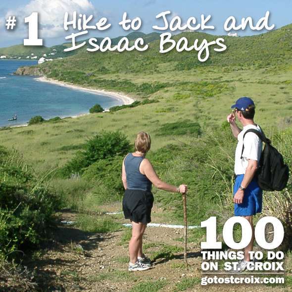 When preparing to hike down to, and spend time at Jack and Isaac Bays please remember to be prepared. There are no amenities on either beach, so bring your own towels, snorkel gear, sun protection. and plenty of water. Just keep in mind that you do have to hike in, so make sure you can comfortably carry whatever you choose to take with you. Take your time and enjoy the hike down to Jack and Isaac Bays, the rolling hills and scenic views are breathtaking. Cool off in the Caribbean Sea when you reach the beaches and take in the natural beauty that St. Croix has to offer.