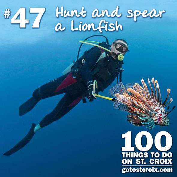 Now that it is legal (and encouraged) to spear hunt lionfish to help eradicate the problem, St. Croix’s dive shops and conservation groups have turned lionfish hunting into a sport! There are lionfish derbies and tournaments that offer prizes for the biggest and most lionfish caught. Dive Experience even offers a one tank afternoon Lionfish Hunt Dive for those want to try their hand at hunting and help out St. Croix at the same time. Please spread the word about the lionfish, the only way we can really combat this threat is with widespread knowledge throughout our community. Be sure you know what a lionfish looks like and to contact authorities as soon as you see one. Be sure to pick up a marker before your next dive or snorkel trip!