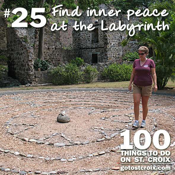 I find it surprising how many wonderful places can be unintentionally hidden, even from locals, here on the island of St. Croix. The most recent example I discovered is the Labyrinth at Estate Mount Washington on the West End of the island. Many people drive by the unsuspecting turn that leads you to Estate Mount Washington as you head north from Creque Dam Road, but if you watch closely you will see a small yellow sign on the right hand side of the road at the base of a telephone pole which simply states: ‘Estate Mt. Washington, Circa 1750’. I would call this worn dirt road ‘the road less traveled’, but take it anyway!