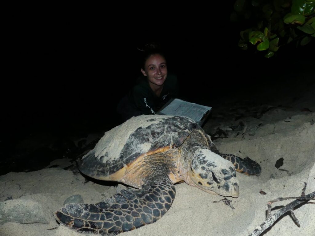 Volunteer collecting data on a hawksbill sea turtle nesting at Buck Island National Reef Monument