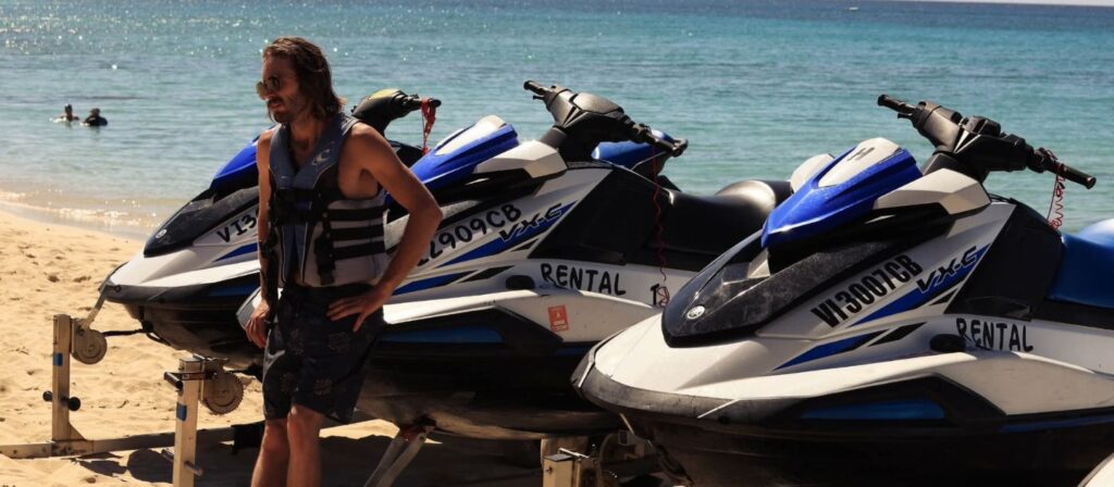West End Water Sports is located on Rainbow Beach, on St. Croix’s west end. Here you’ll find the calm, crystal blue waters and white Caribbean sand you have dreamed of – perfect for water sports. We offer a fleet of new and well maintained Jet Skis for rent, or take our Hams Bluff and Sandy Point Guided Jet Ski Tour! Looking for something more relaxing? We have lounge chairs, umbrellas, snorkel gear, stand-up paddle boards, kayaks and floats for rent, and free volleyball, bag toss games and giant Jenga. For lunch and your favorite island beverages, stop next door at ‘Rhythms at Rainbow’ beach bar and grill. We hope to see you soon!